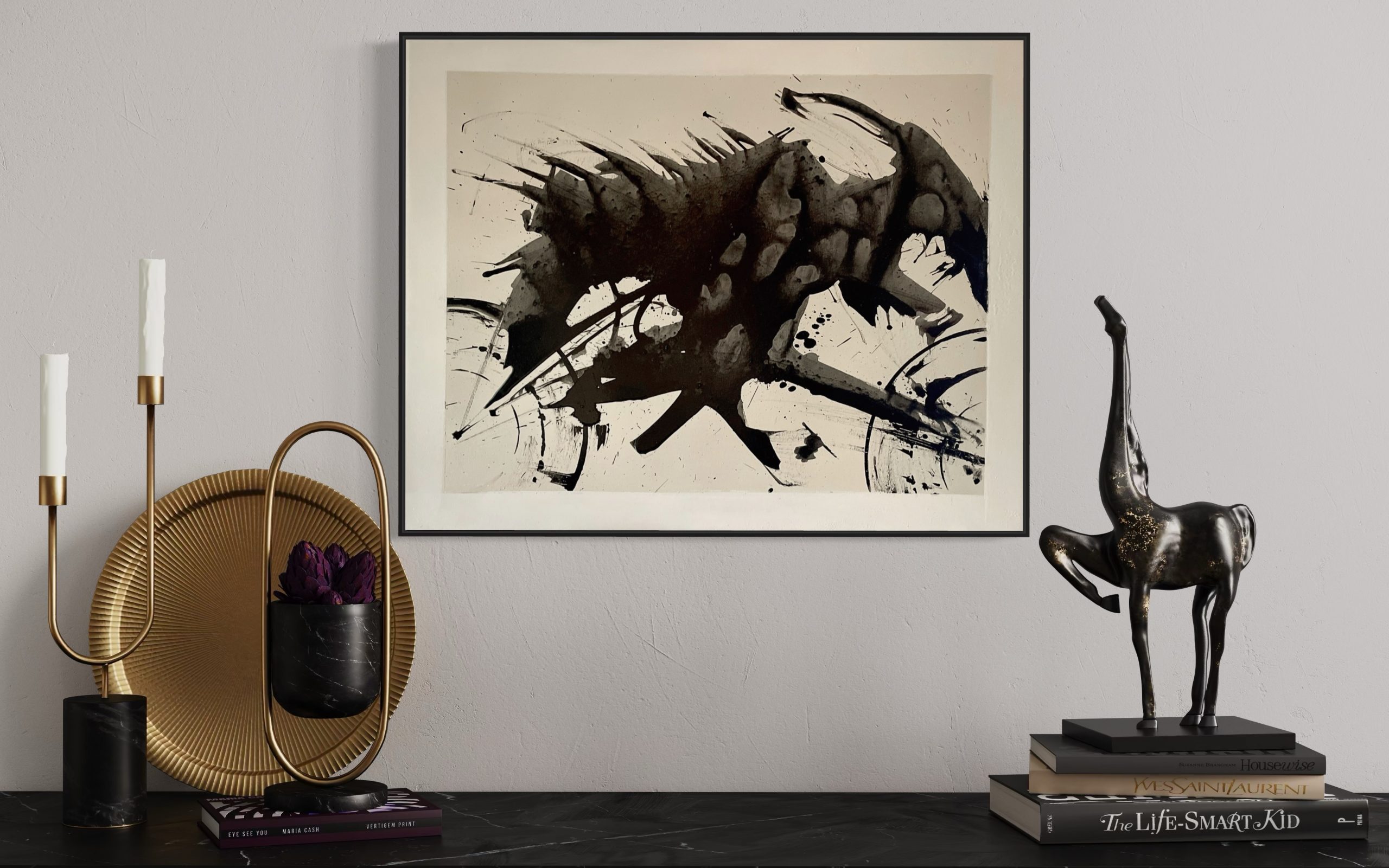 16″x 20″ Acrylic on Canvas, Black and grey. A striking fusion of movement and form, this abstract painting evokes a sense of raw energy and organic transformation. Bold black acrylic sweeps across a grey backdrop, forming intricate tendrils, sharp contrasts, and layered textures that hint at both chaos and harmony. The dynamic brushwork and fluid lines create a feeling of motion, drawing the viewer into a world of mystery and emotion. Whether interpreted as a powerful force of nature, a surreal creature, or an abstract expression of internal struggle, this piece is sure to make a bold statement in any space. (Frame not included)